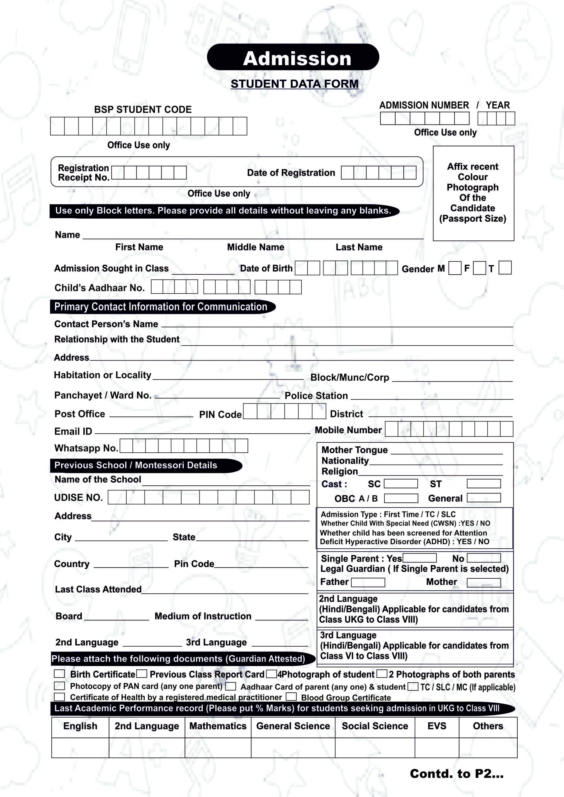 Step 2 : Feel up the Admission Form as per instruction by a Black ball point pen